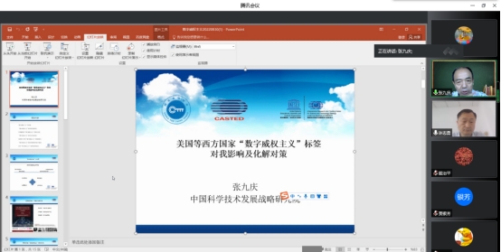 9月1日下午,伟德国际1949始于英国邀请了科技部中国科学技术发展战略研究院研究员、《中国科技论坛》副主编张九庆作了题为“美国等西方国家‘数字威权主义’标签对我影响及化解对策”的线上学术讲座,学院全体专任教师和部分研究生聆听了讲座,讲座由伟德国际1949始于英国副院长许志勇主持。