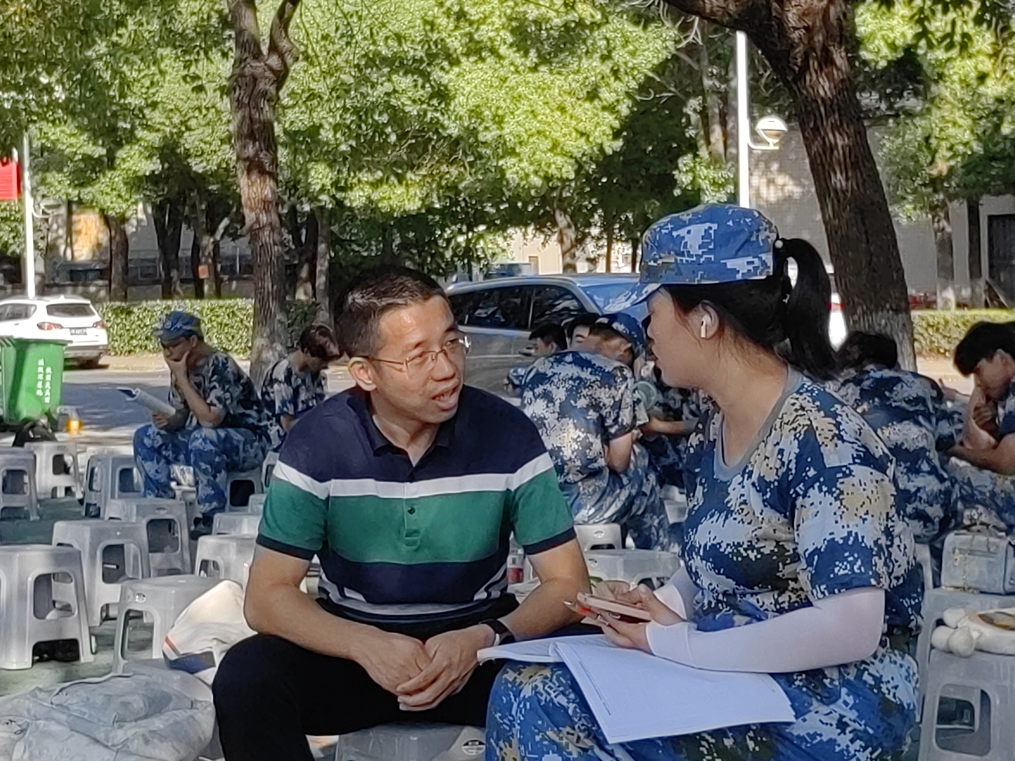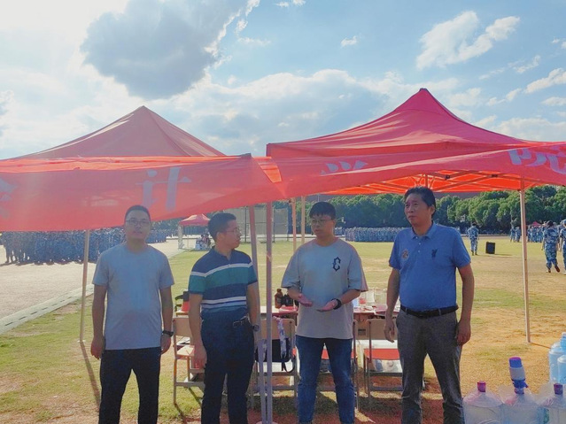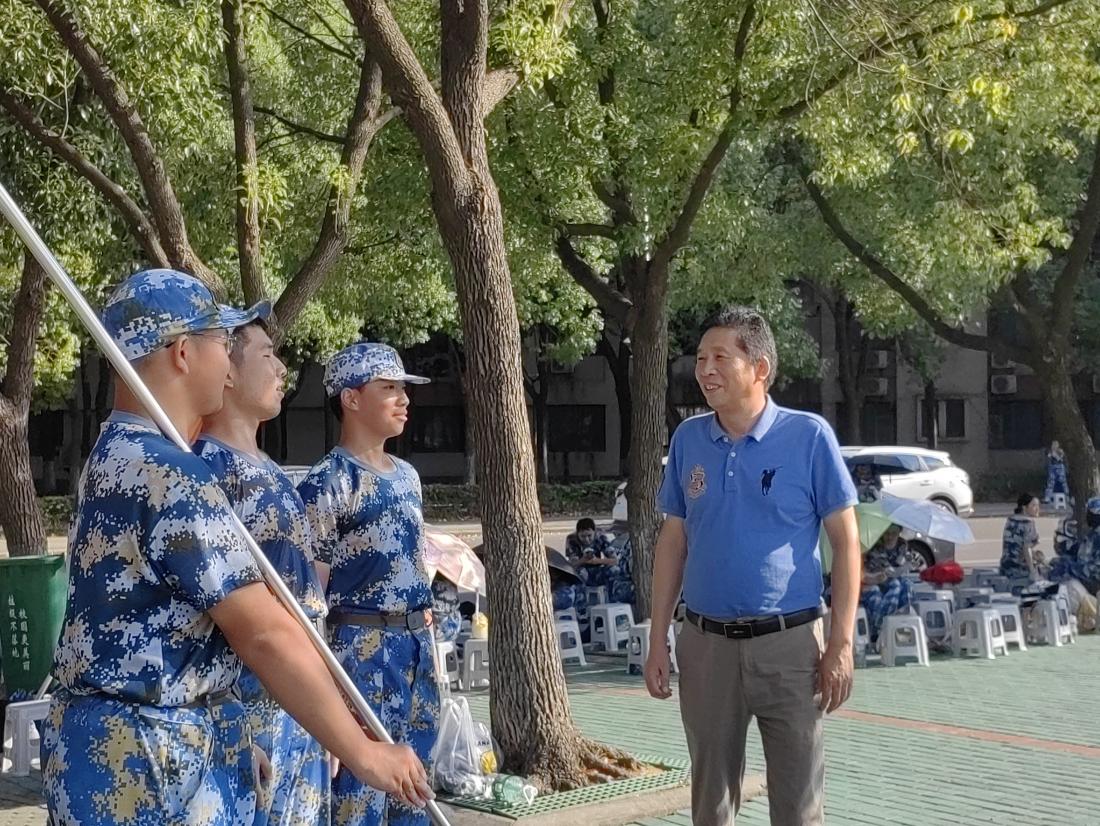 本网讯(通讯员:蔡卓嵘)烈日炎炎,2023级新生军训如期开展。9月19日下午,为深入了解新生入校生活情况,关心新生军训生活,学院院长胡伟、党委书记王友刚、党委副书记李阳阳深入军训现场,看望慰问参加军训的教官和学生。