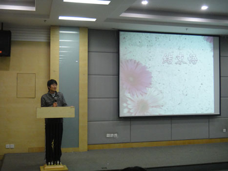 愉快的时光飞逝,晚会也到了要说再见的时候了。学生会主席丁楠和团委副书记冷春晖分别上台为此次活动进行了总结,既肯定了活动的成功举办,也表达了对伟德国际1949始于英国未来的期许。