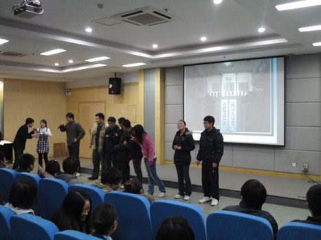 资产Q0941班的学姐们也来为晚会助兴,同学们又徜徉于古典音乐的海洋中,“数青蛙”的游戏互动环节进一步拉近了同学间的距离,活跃了现场气氛。