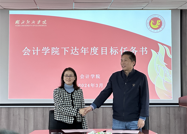 院长胡伟对学校下达的2024年度目标任务中的共性目标、学科建设、教育教学、科研工作等各项指标进行了解读。经学院党政联席会研究,围绕专业建设、人才培养、科学研究、第二课堂、就业等工作对任务进行了分解,对会计系、财务管理系和审计系下达了共性目标任务和量化指标。